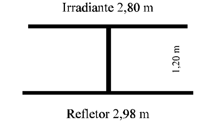 O elemento irradiante é formado de 2 pedaços de tubo com 1,39 m cada um, com um espaçamento entre eles de 2 cm, perfazendo um total de 2,8 m. O elemento refletor tem um tamanho de 2,98 m, podendo ser um utilizado um único tubo ou então usar dois pedaços de 1,49 m. O espaçamento entre os elementos deve ser de 1,20 m.