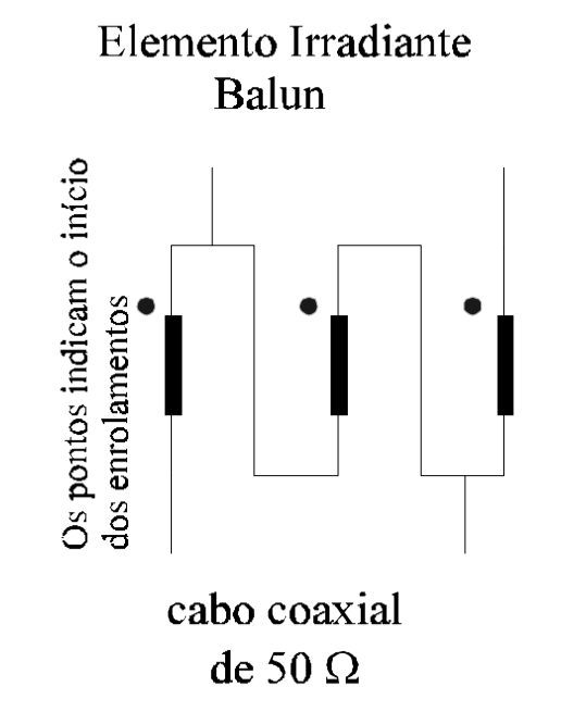 O balun pode ser feito tendo um tubo de PVC branco ou teflon como fôrma, tendo um enrolamento trifilar (esse tipo de enrolamento é feito enrolando-se três pedaços de fio ao mesmo tempo, um ao lado do outro) de fio esmaltado 12 AWG ou 14 AWG com 4 conjuntos de espiras, sendo colocado dentro de um tubo de PVC de 60 mm com dois tampões, um em cada ponta servindo inclusive servindo para proteger o cabo coaxial da entrada de água e servindo também para poder isolar o balun da gôndola.