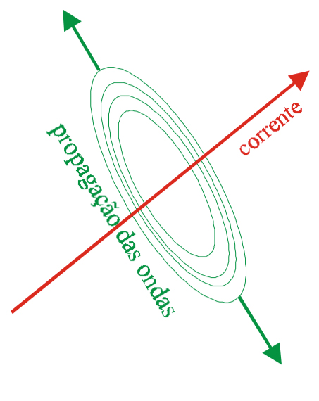 A intensidade do campo é diretamente proporcional ao valor da corrente no fio. Assim, quanto maior a corrente no fio, maior o campo gerado. Essa conclusão é fundamental para o bom funcionamento desse fio, ao qual chamamos popularmente de antena. O campo cria a onda e a onda caminha pelo espaço afora.