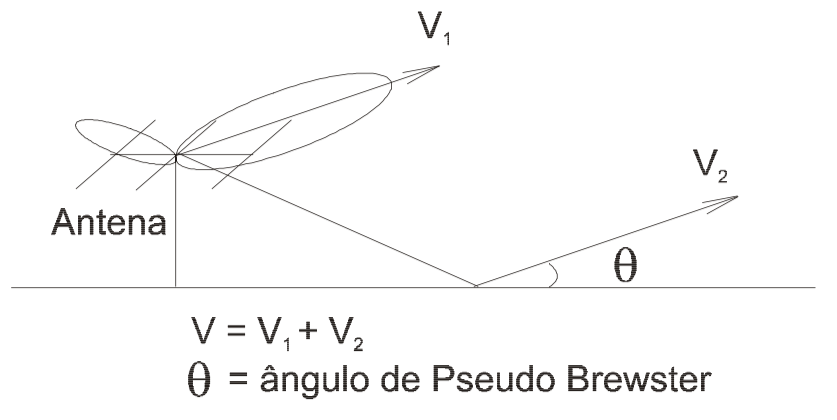 Obviamente a magnitude do coeficiente de reflexão é mínima quando o ângulo de fase está em 90 graus. Nesta situação a onda refletida muda de sinal, portanto quando os vetores transmitidos, via onda refletida no solo, estiverem abaixo do ângulo de Pseudo-Brewster estes irão diminuir a grandeza do vetor resultante e serão a este adicionados quando estiverem acima do referido ângulo.