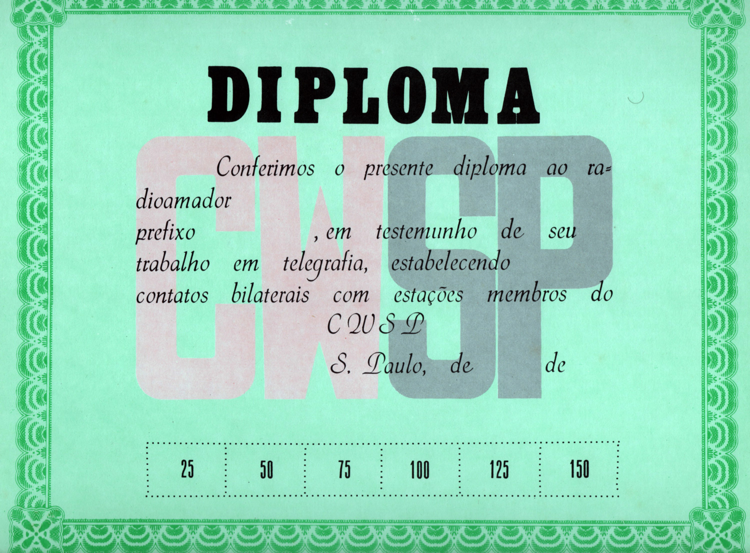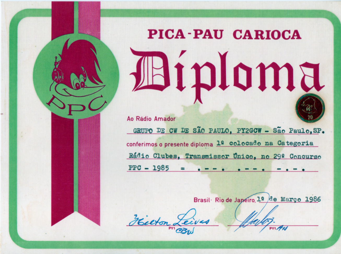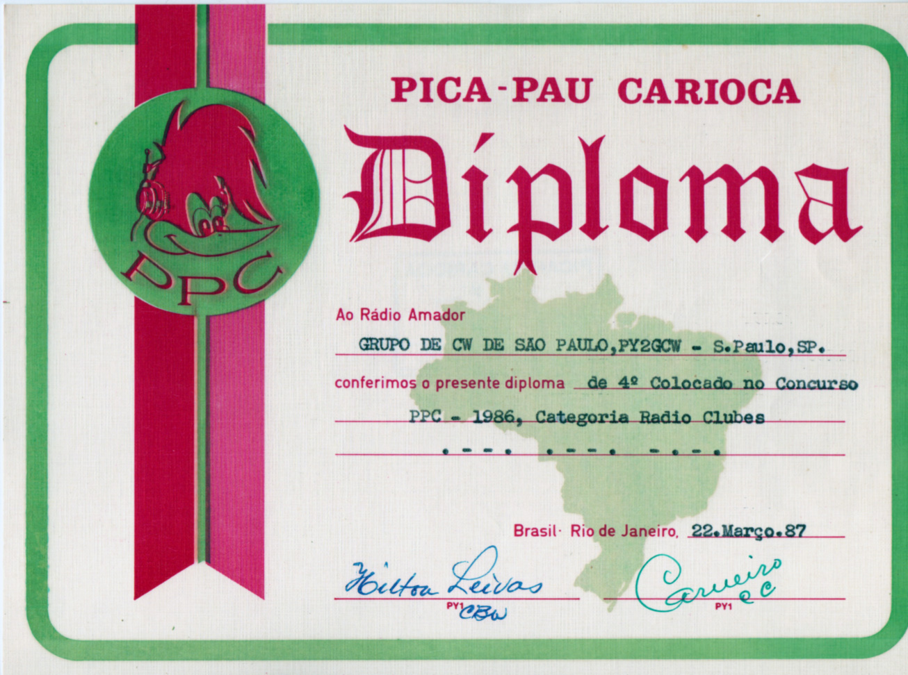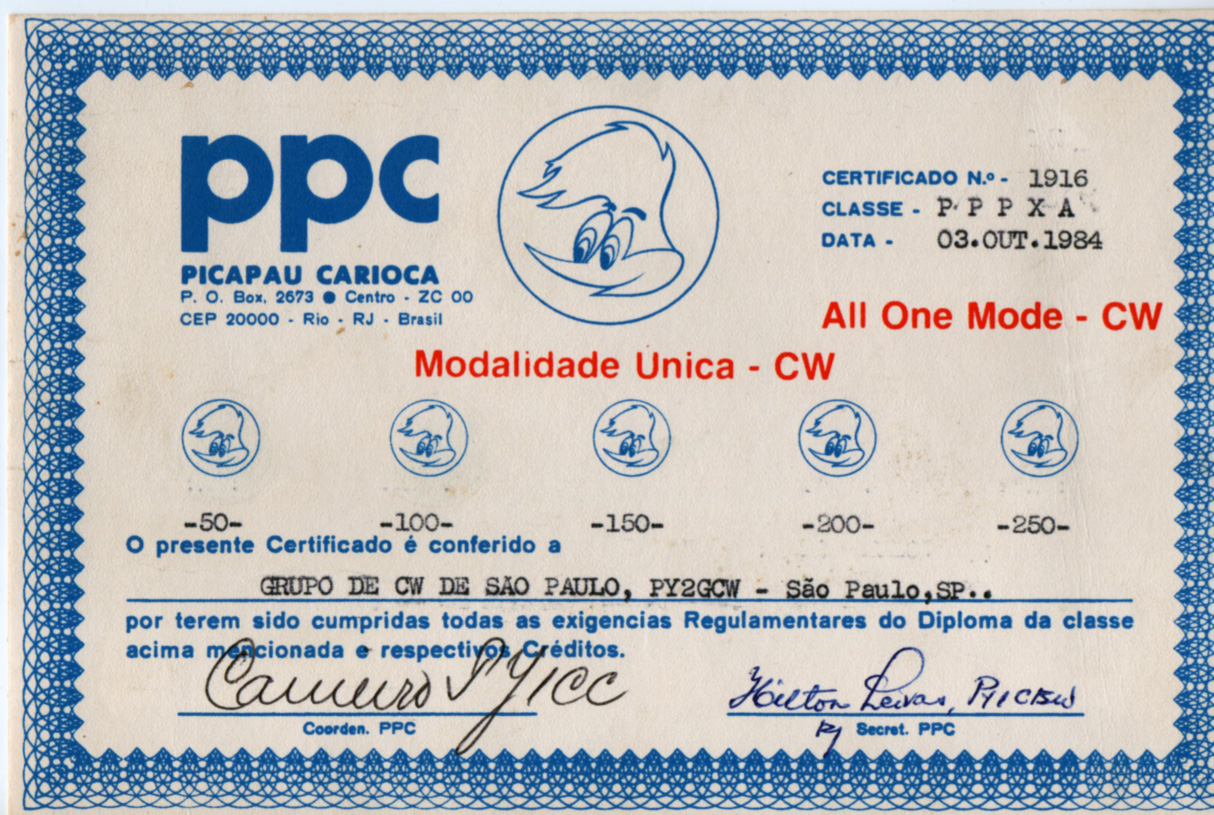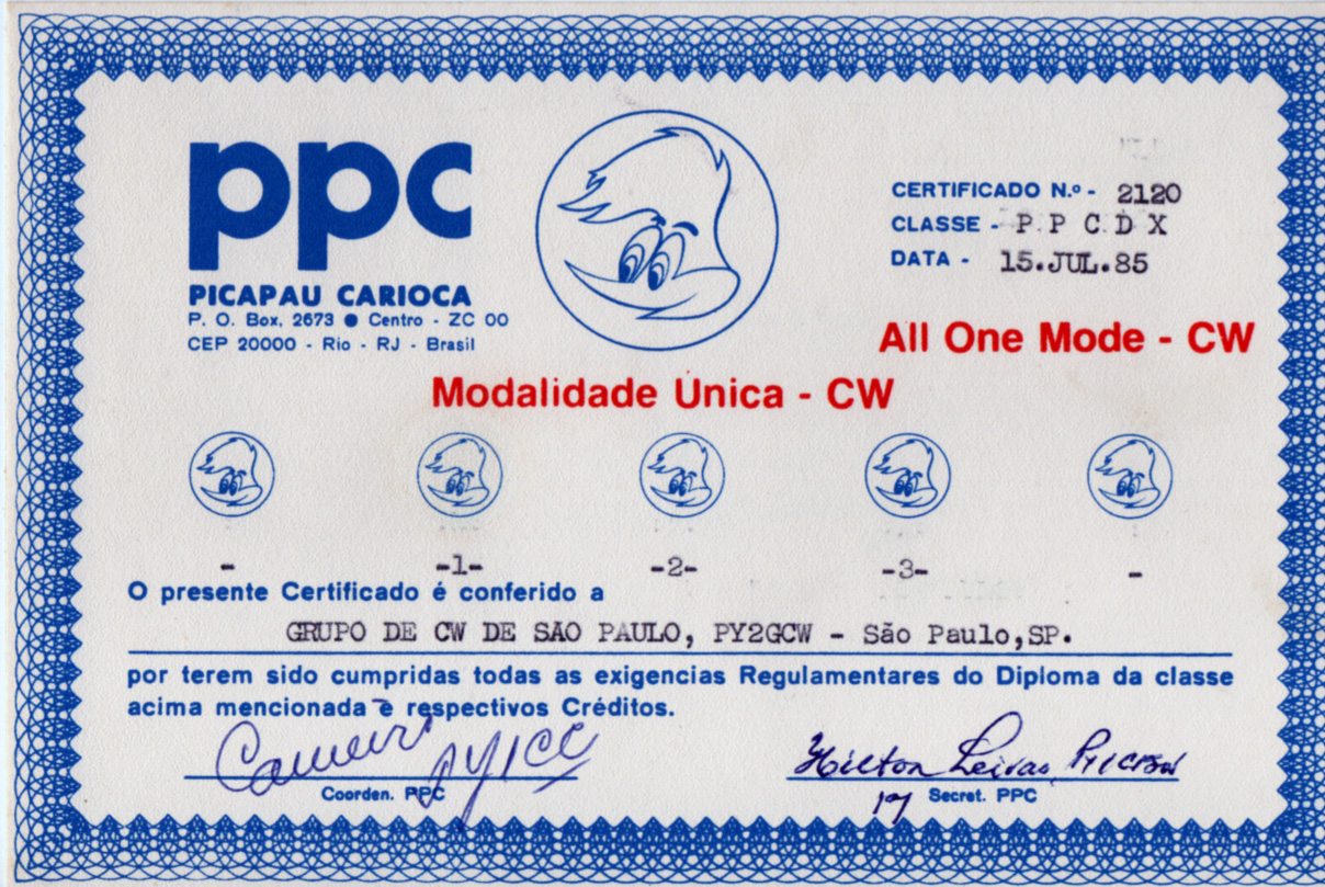 Nesta primeira galeria, todos os diplomas do PPC – Pica Pau Carioca, (primeiro grupo de CW do Brasil) conquistados pela antiga estação oficial do CWSP. As respectivas descrições estão nas fotos.