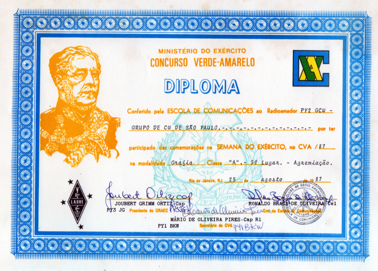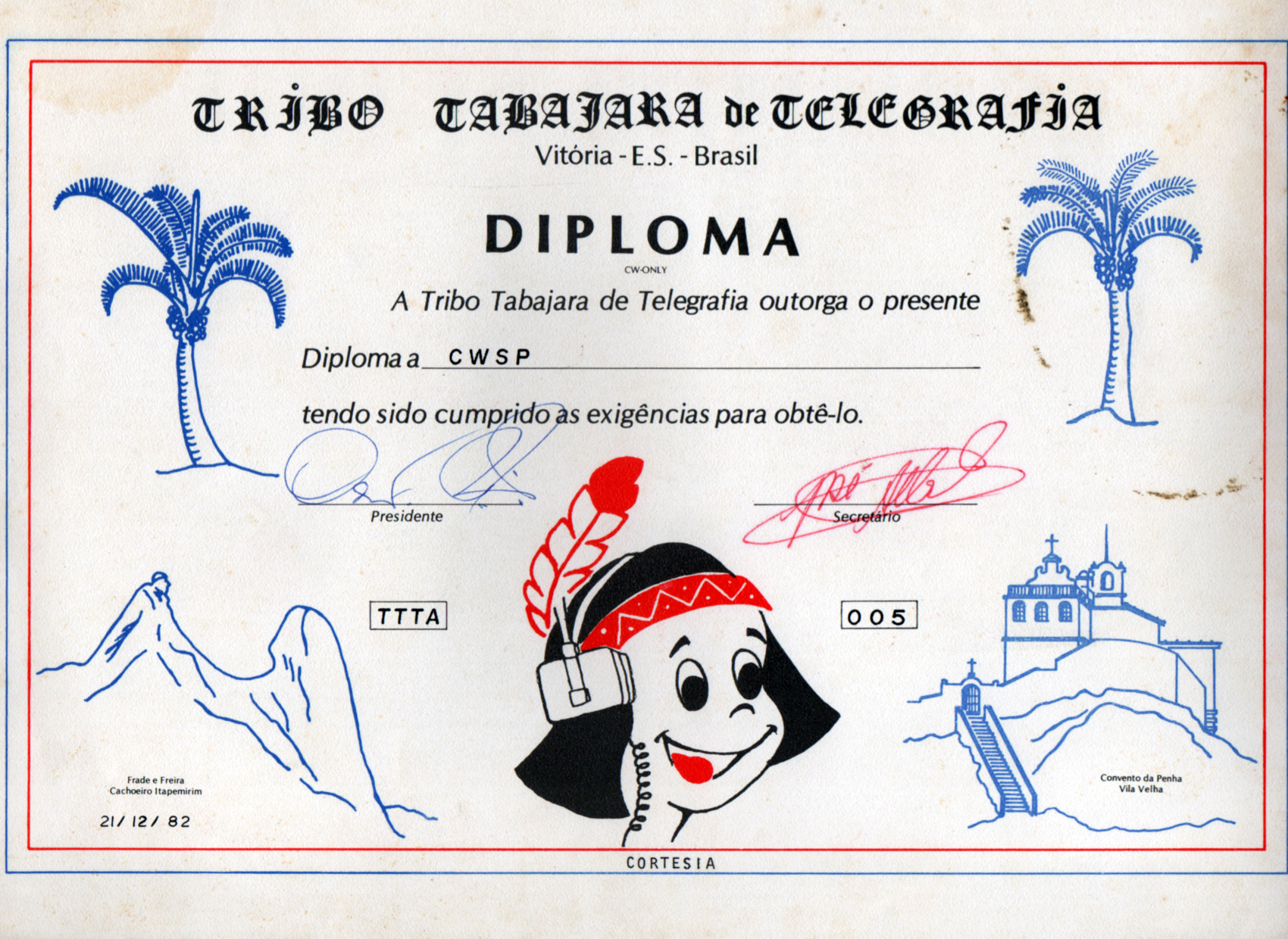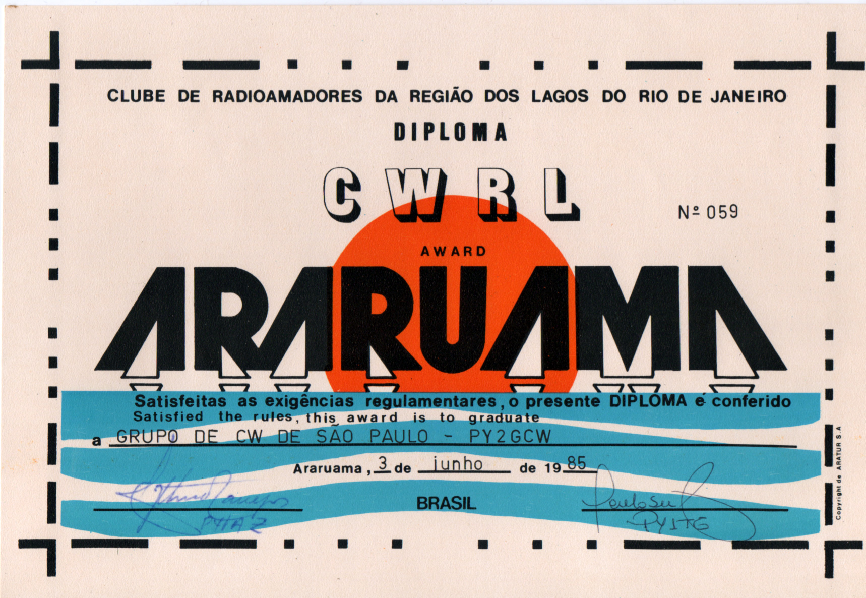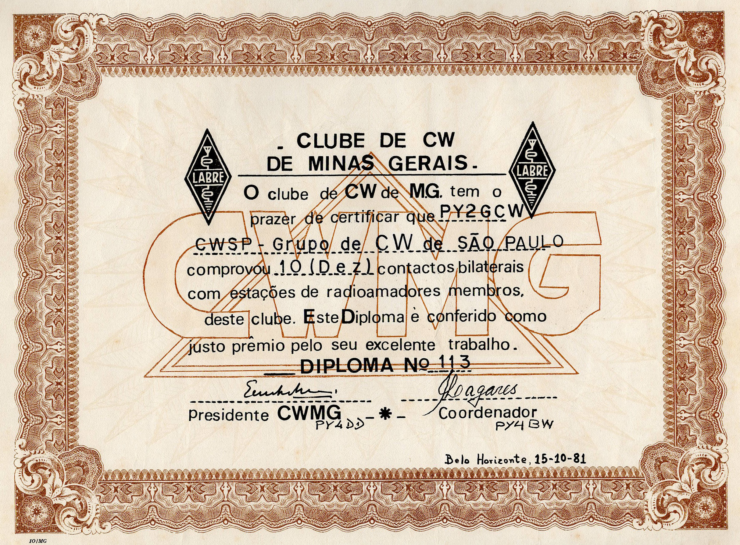 Aqui, os diplomas do GPCW – Grupo Praiano de CW, de Santos – SP.