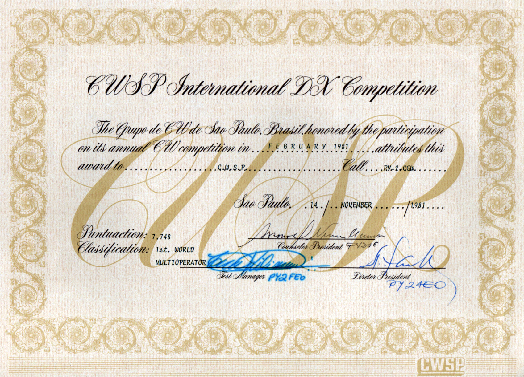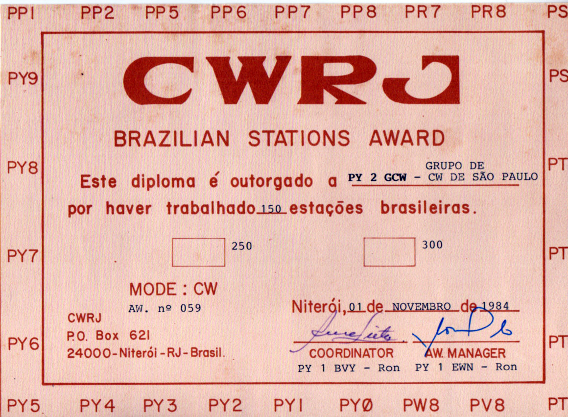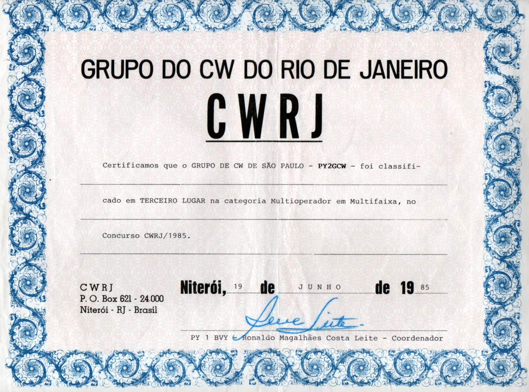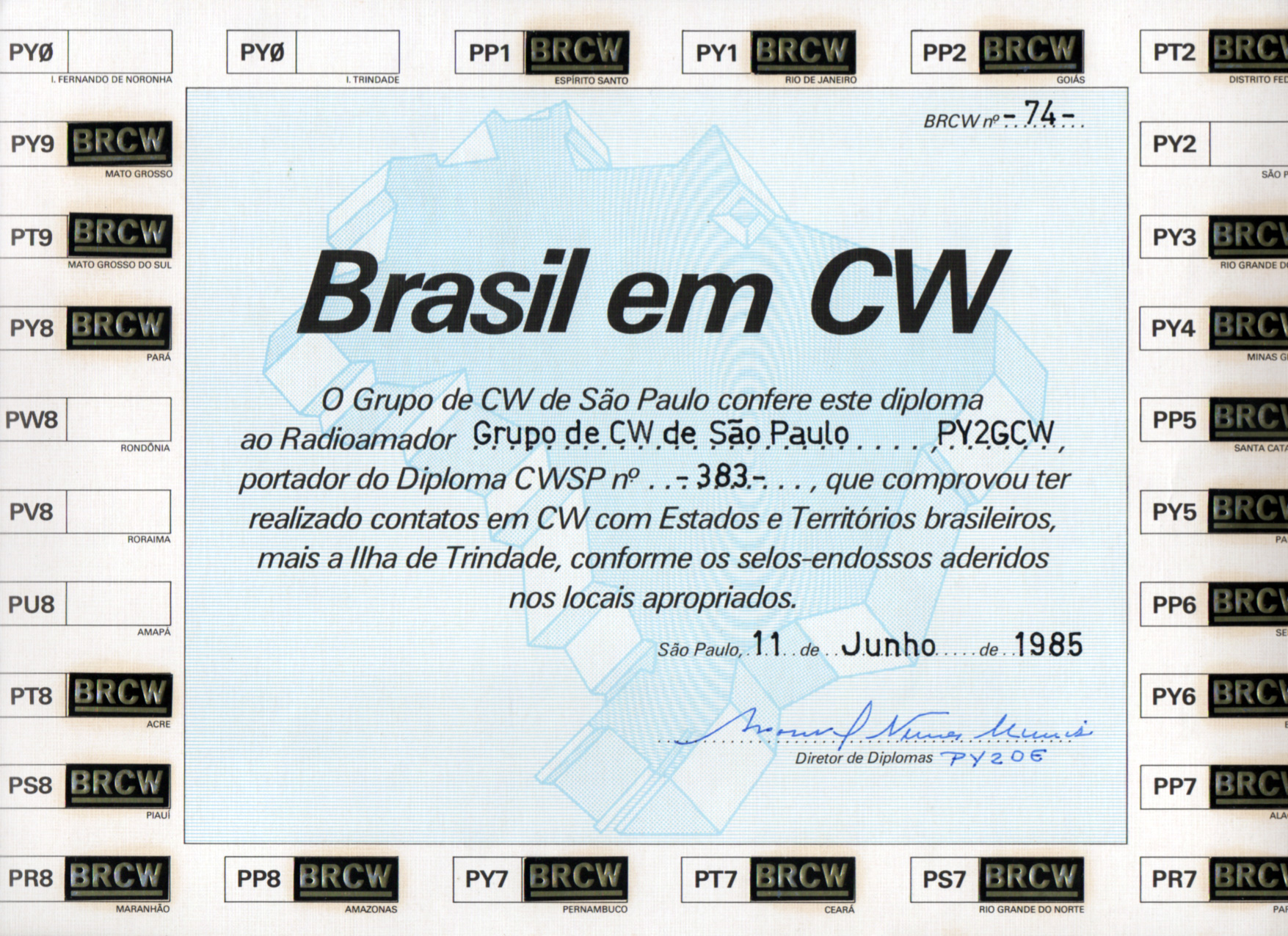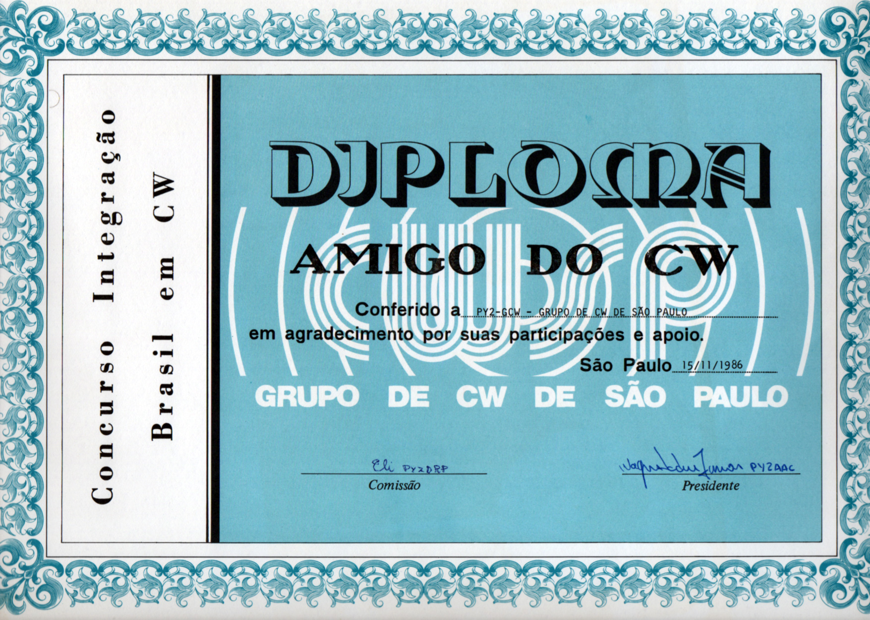 Atualmente extinta, a PY2GCW conquistou espaços importantes no radioamadorismo e também diversos diplomas, que reunimos aqui nesta galeria após um grande trabalho de digitalização.