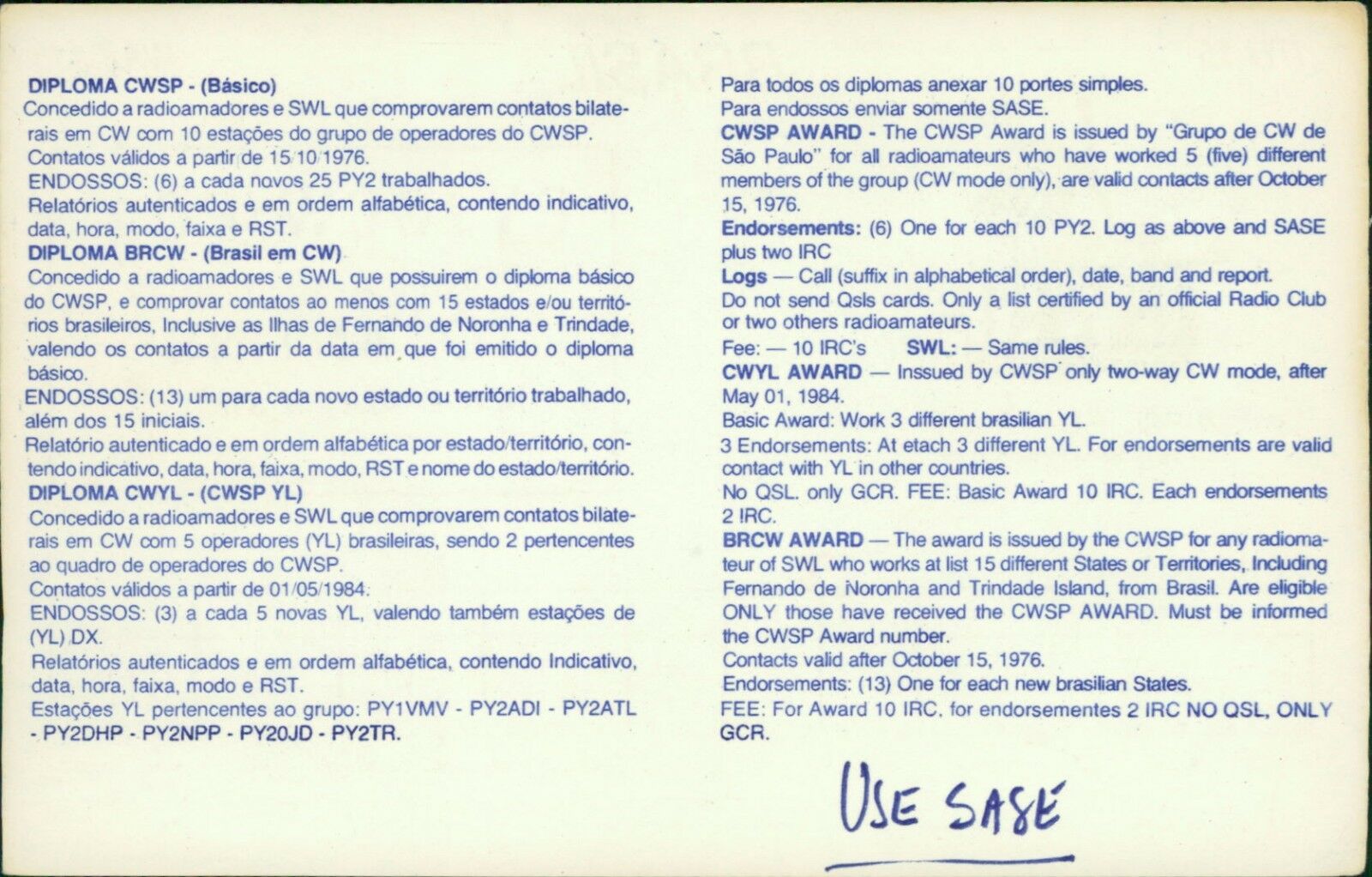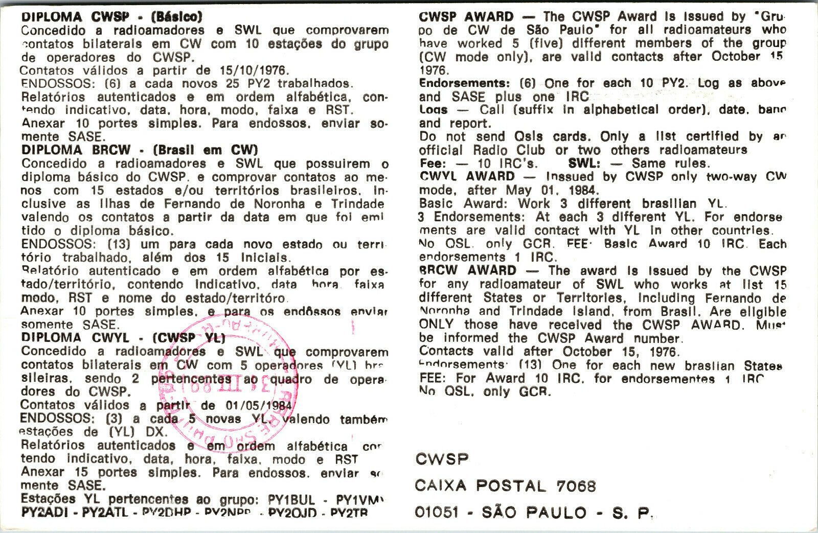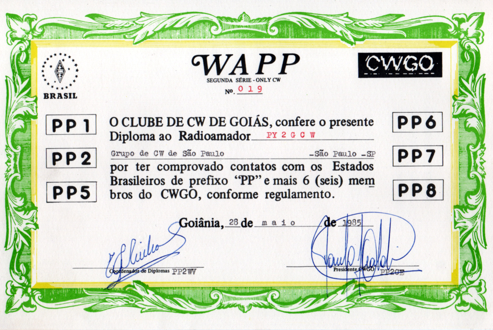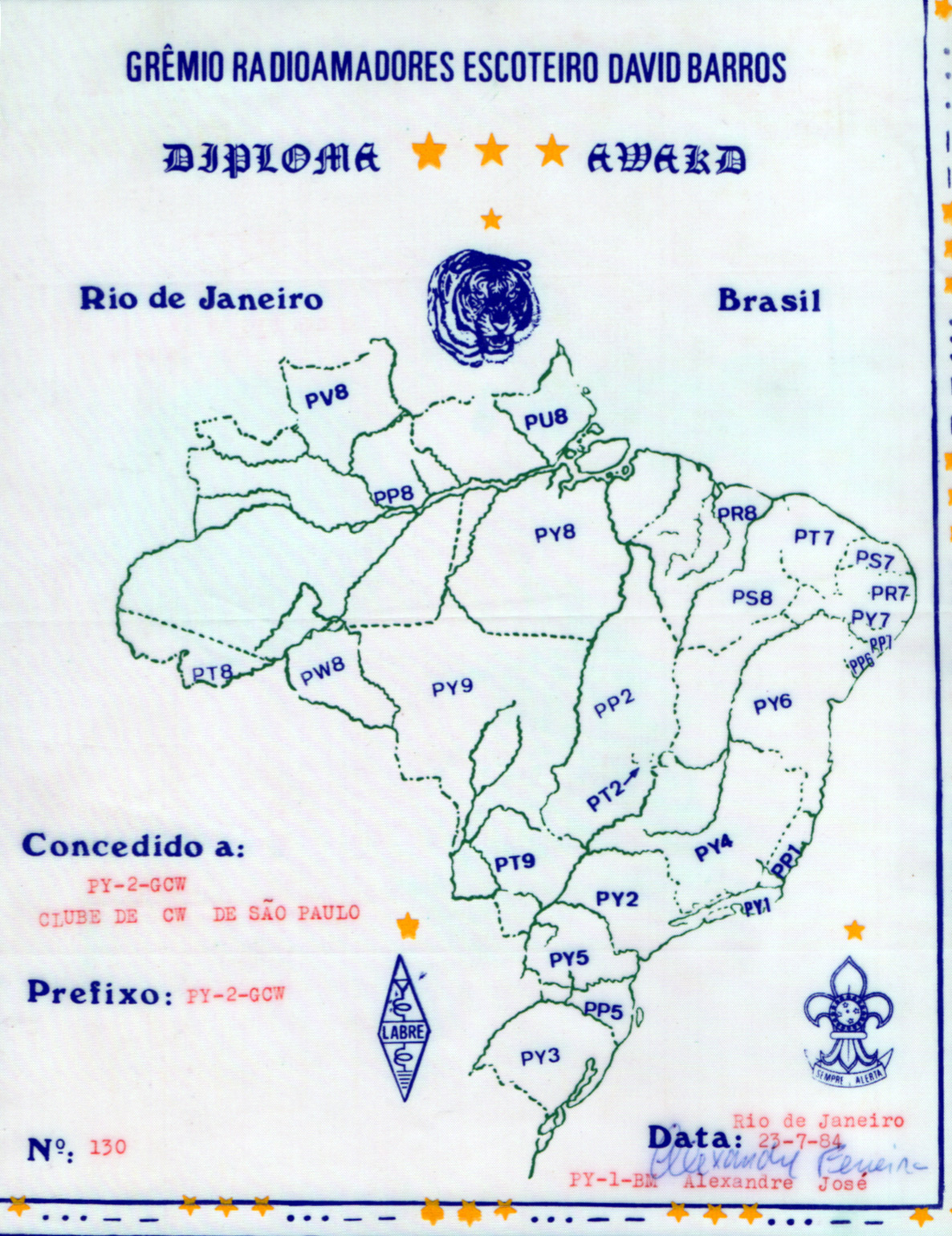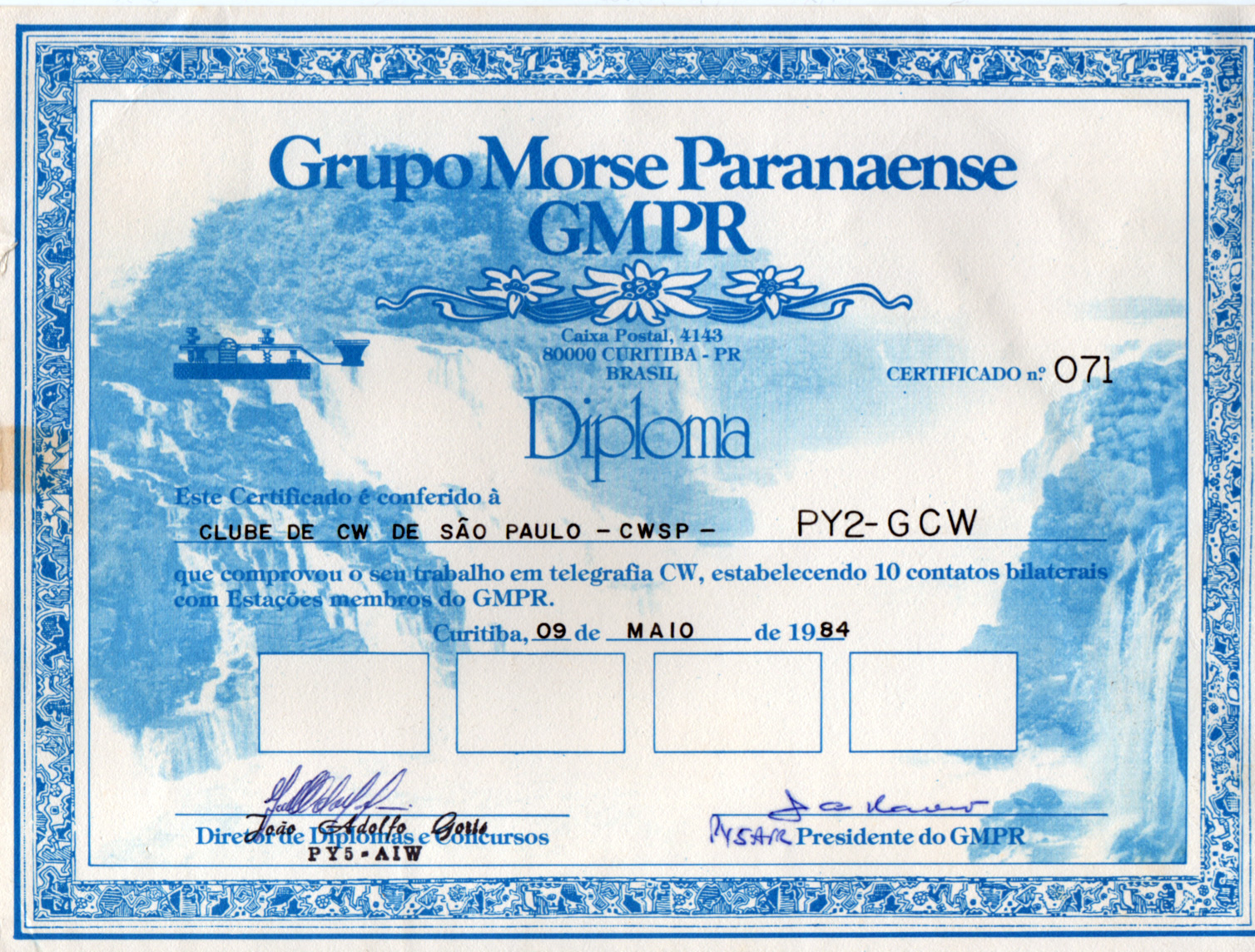 Atualmente extinta, a PY2GCW conquistou espaços importantes no radioamadorismo e também diversos diplomas, que reunimos aqui nesta galeria após um grande trabalho de digitalização.